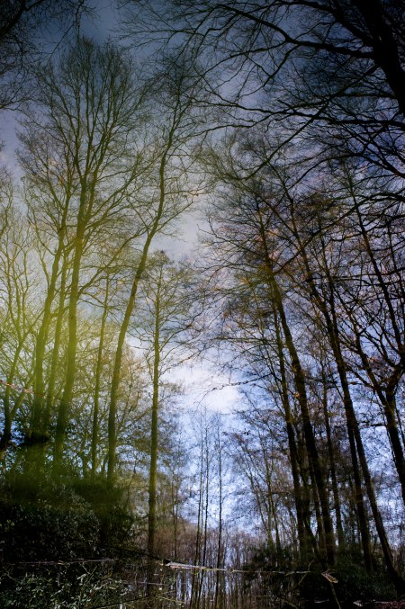 Während sich ihre Augen schließen, fangen ihre Gedanken an umherzuirren. Sich nicht zähmen lassend, rasen sie von links nach rechts und unten nach oben vor ihrem inneren Auge. Ihr wird schwindelig und sie kann sich nicht mehr auf den Beinen halten. Als sie sich fallen lässt, setzt sich dort, wo vorher düstere Verwirrung herrschte, ein Bild voller Eigenarten und Fragwürdigkeiten zusammen. Blüten springen ihr rosa in die Augen, bedecken wohlriechend ihre Nasenlöcher. Blätter legen sich sanft über ihren roten Mund. Dornen stechen ihr sachte in die Arme, während sie von ihnen nach einem stundenlangen Fall in die Tiefe aufgefangen wurde. Sie erhebt sich aus einem Dornenmeer, und obwohl sie nicht recht versteht, verspürt sie aufrichtige Liebe für den Wald, für seine ursprüngliche Atmosphäre, in der sie sich plötzlich befindet. Ihr Kopf fühlt sich leer und unbeschwert an, als hätte der Sturz ihr alle Zweifel genommen. Was bleibt, ist die Freude über das wohlige Gefühl, das der schattige Ort, an dem sie sich nun befindet, in ihr auslöst. Sie reflektiert mit Behagen die Geschehnisse, bemerkt diese innere Ruhe und wunderte sich über die Ausgelassenheit, welche sie in dieser Form seit ihrer Kindheit nicht mehr vernommen hat. Sich nun endlich umblickend, erfasst sie den Wald in seiner ganzen Höhe, Breite und Tiefe. Die Geäste hoch in den Wipfeln wabern über ihr wie winkende Bekannte, das Unterholz erstreckt sich in seiner braun-schwarzen Unendlichkeit, in der sie in einiger Distanz einen schreitenden Mann erblickt, dessen unebener Körper kaum mit den dunklen Farben des Waldes kontrastiert. Sie kann seine Silhouette nur erahnen, erkennt aber deutlich seine ungewöhnlich großen Füße am Ende der dünnen Beine, die strichartigen Arme, die ebenso gegensätzlich in plumpe Hände münden. Und sie erkennt einen schmalen Kopf, der symmetrisch die Mitte des Körpers markiert. Seine überlangen Gliedmaßen schleppend, schreitet der ungewöhnlich große Herr außerhalb jeglicher Gesellschaft und in völliger Ruhe zwischen den Fichten und Kiefern umher.