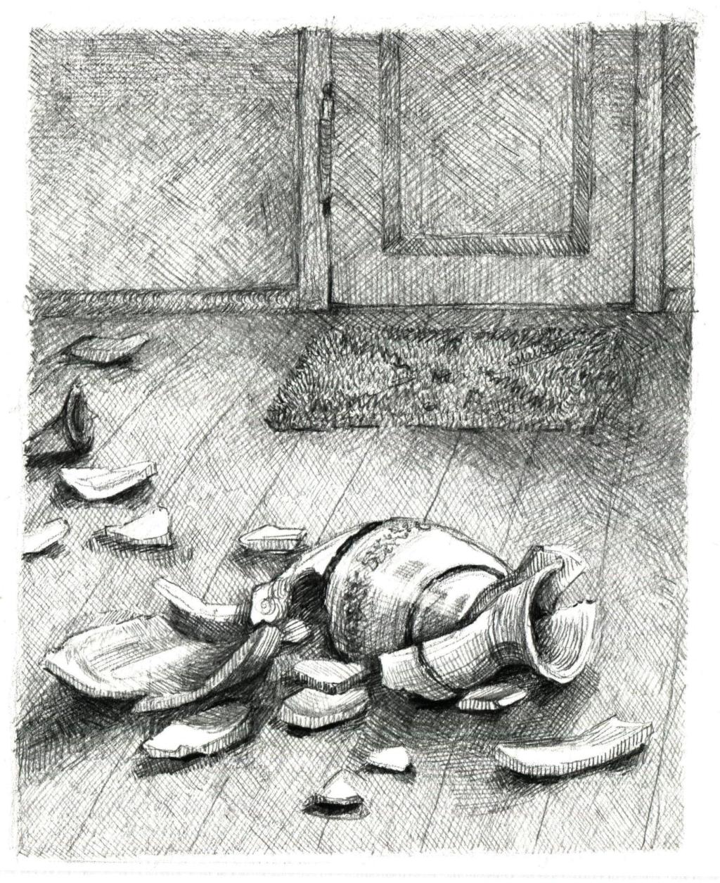 „Das werden wir noch sehen, nicht wahr?“ Plärrt der alte betrunkene Mann, eine desorientierte Abrissbirne, die über ihm hin und herschwingt. Als der Blick seines Vaters von ihm abwandert, sein betrunkener Körper leicht zur Seite kippt, nutzt er die Gelegenheit – ein sauberer, harter Stoß in seine Schulter, und er drängt sich durch, an seiner Mutter vorbei, die immer noch im Hintergrund wimmert, als er die Tür hinter sich zuschlägt.